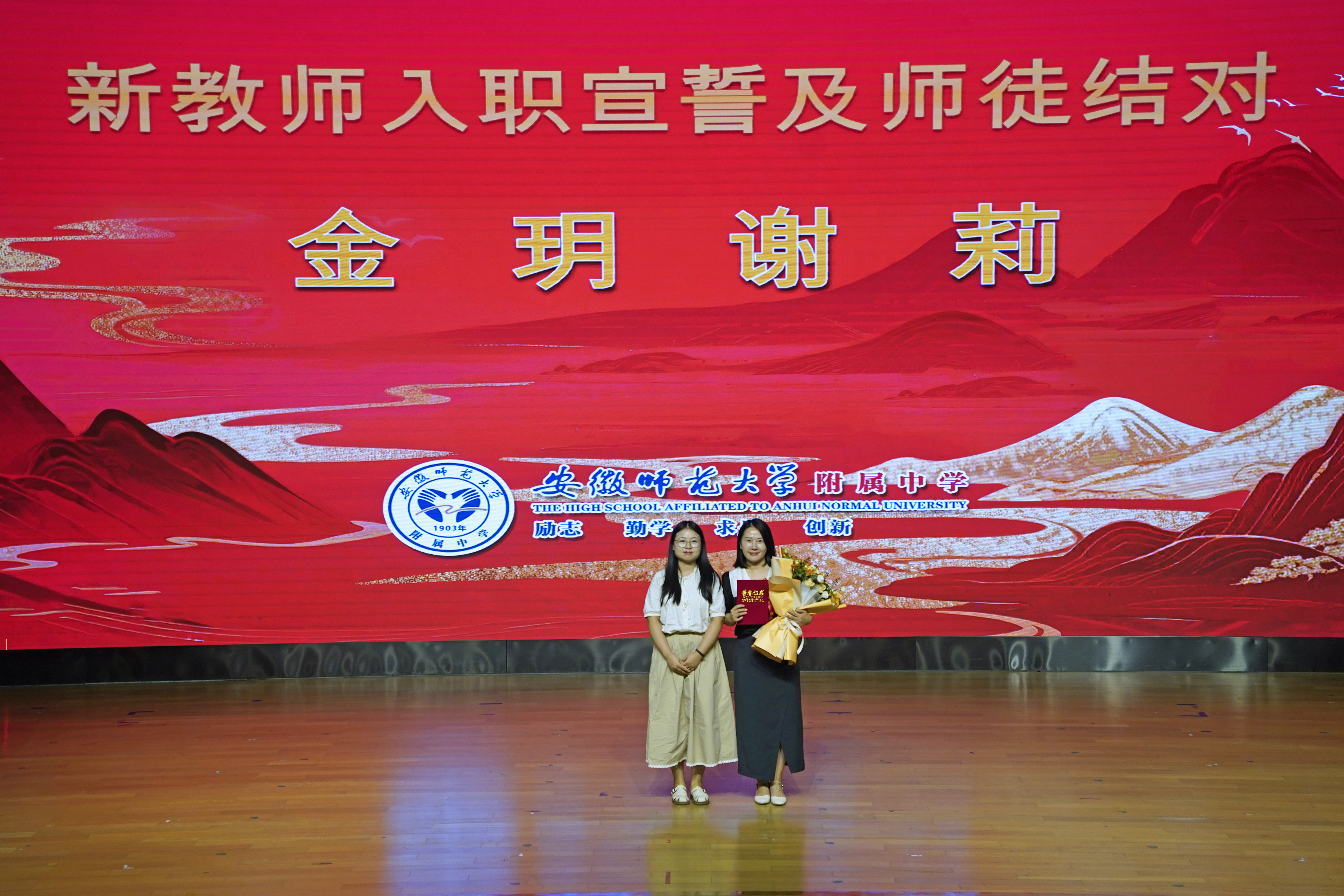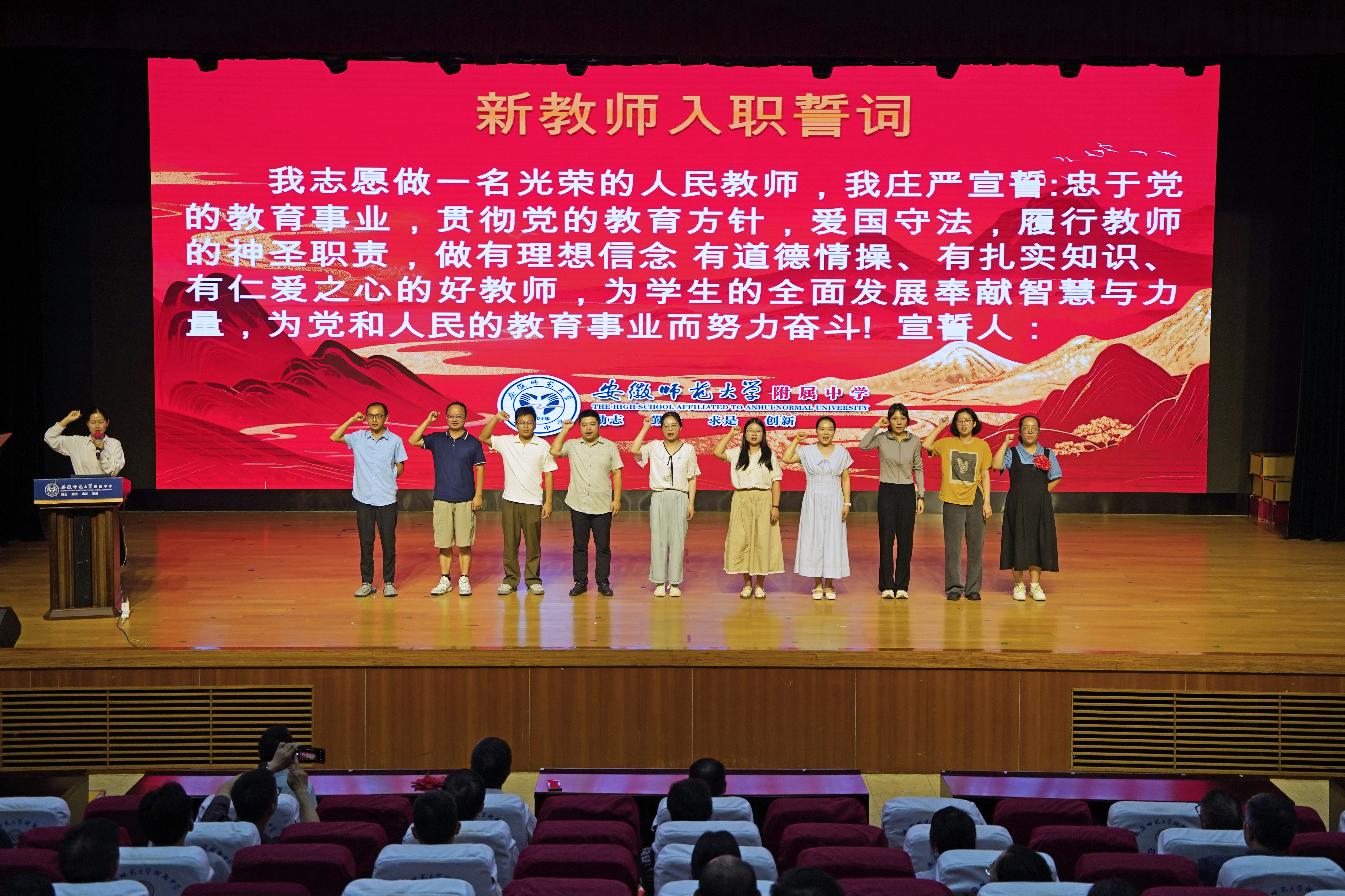 活动最后环节,举行了师徒结对仪式与新教师入职宣誓。谢莉老师与金玥老师正式结成师徒对子;2023至2025年入职的新教师庄严宣誓,铿锵有力的誓言在报告厅内久久回荡,充分展现了年轻教师投身教育事业的坚定决心与满腔热忱。