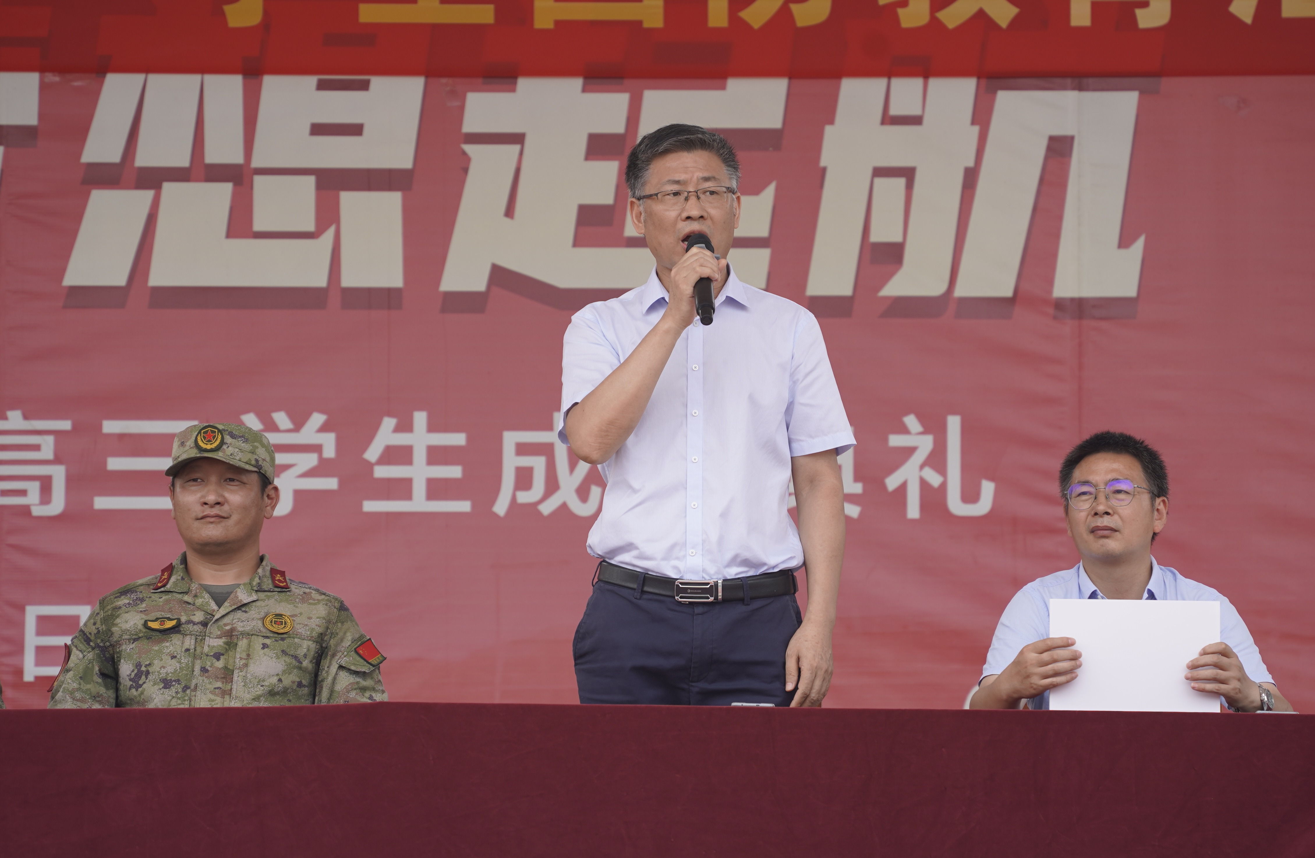 校长毛宣海校长宣布“2025级全体高一新生军训顺利结业”。随着毛宣海的话音落下,2025级高一学生汇演暨军训结业典礼圆满落幕。