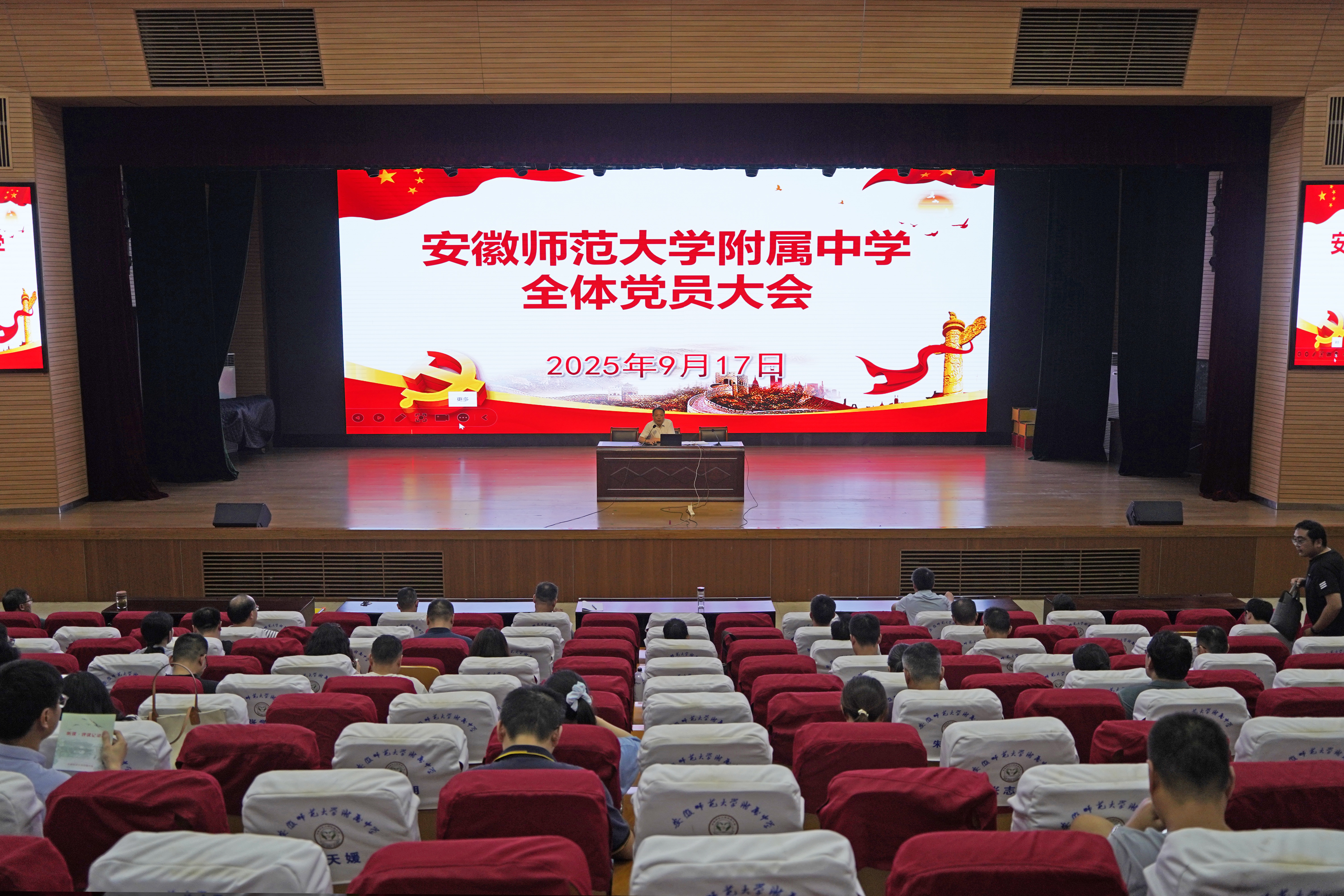 本网讯(附中 李居旖)9月17日下午,安徽师范大学附属中学党委在育英楼报告厅召开全体党员学习大会,全体党员参会。会议由党委书记夏吉中主持。
