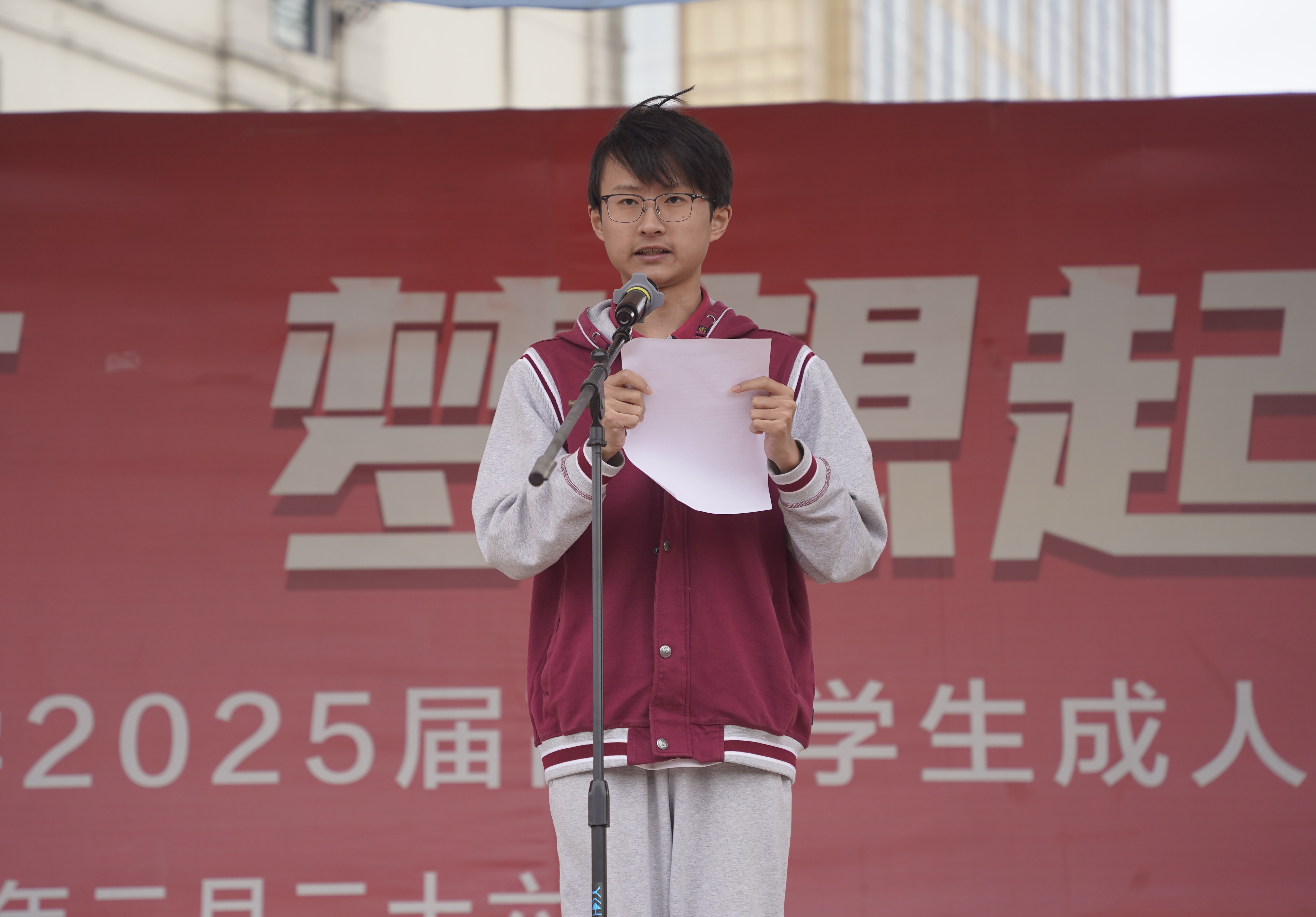 升旗仪式上,高二(5)班学生戴家宝作为代表发言。他以校园运动会为切入点,回忆往届运动会中跳远沙坑的飞沙、长跑赛道的汗水、拔河比赛的热血瞬间,生动诠释体育精神的内涵——是咬牙坚持的勇气,是信任同伴的协作,更是跌倒后再试一次的闯劲。戴家宝提到,体育并非试卷外的点缀,而是青春奋进的底色。它教会学生的不是输赢,而是“永远向上、突破自我”的生命姿态,鼓励同学们将赛场上的拼搏精神融入成长,在青春赛道上用速度与汗水书写荣光。