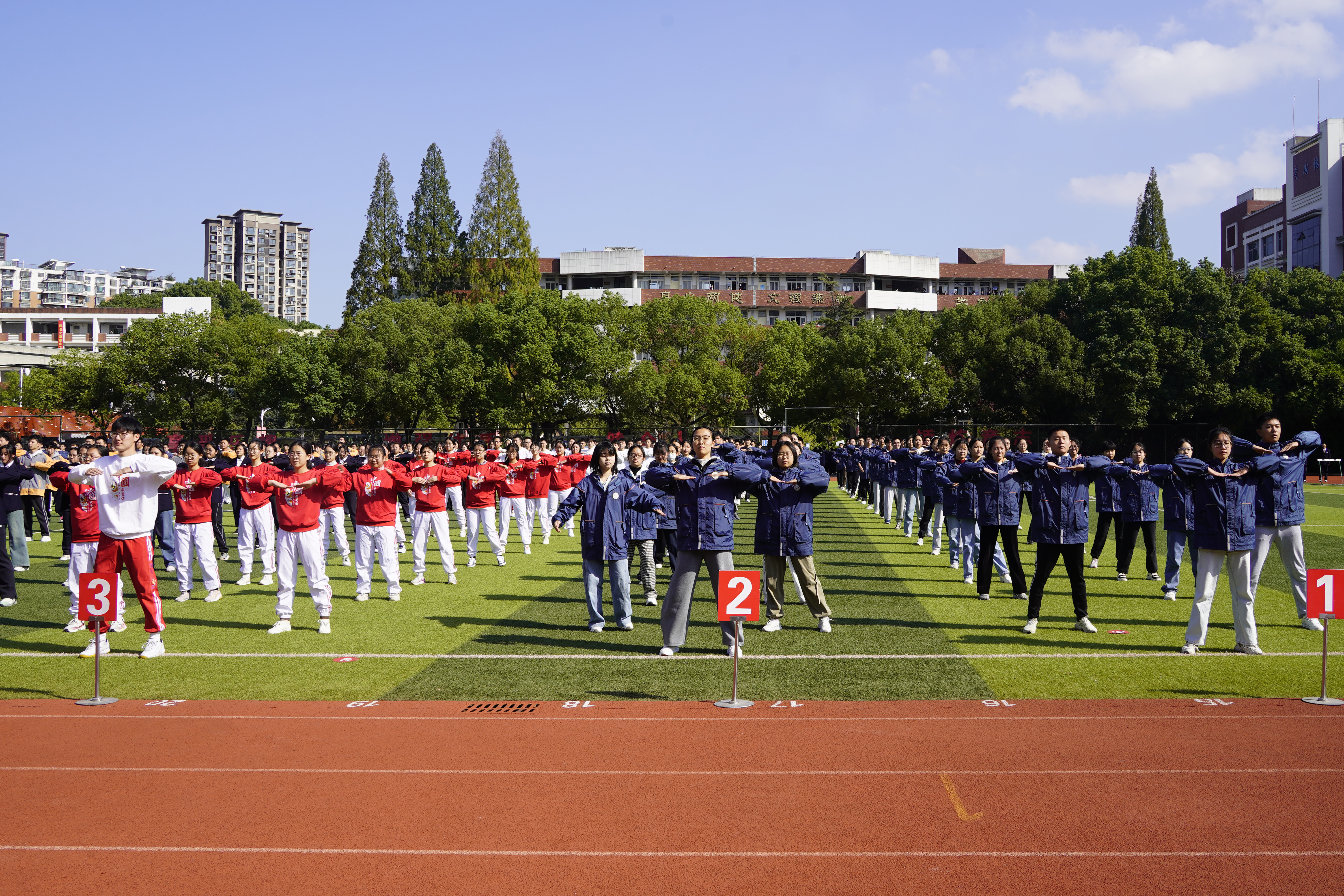 体育文化表演结束后,广播操比赛如期开展。高三、高二、高一年级各分两组依次登场,同学们动作标准划一、精神抖擞,充分展现出良好的团队协作意识与青春朝气。