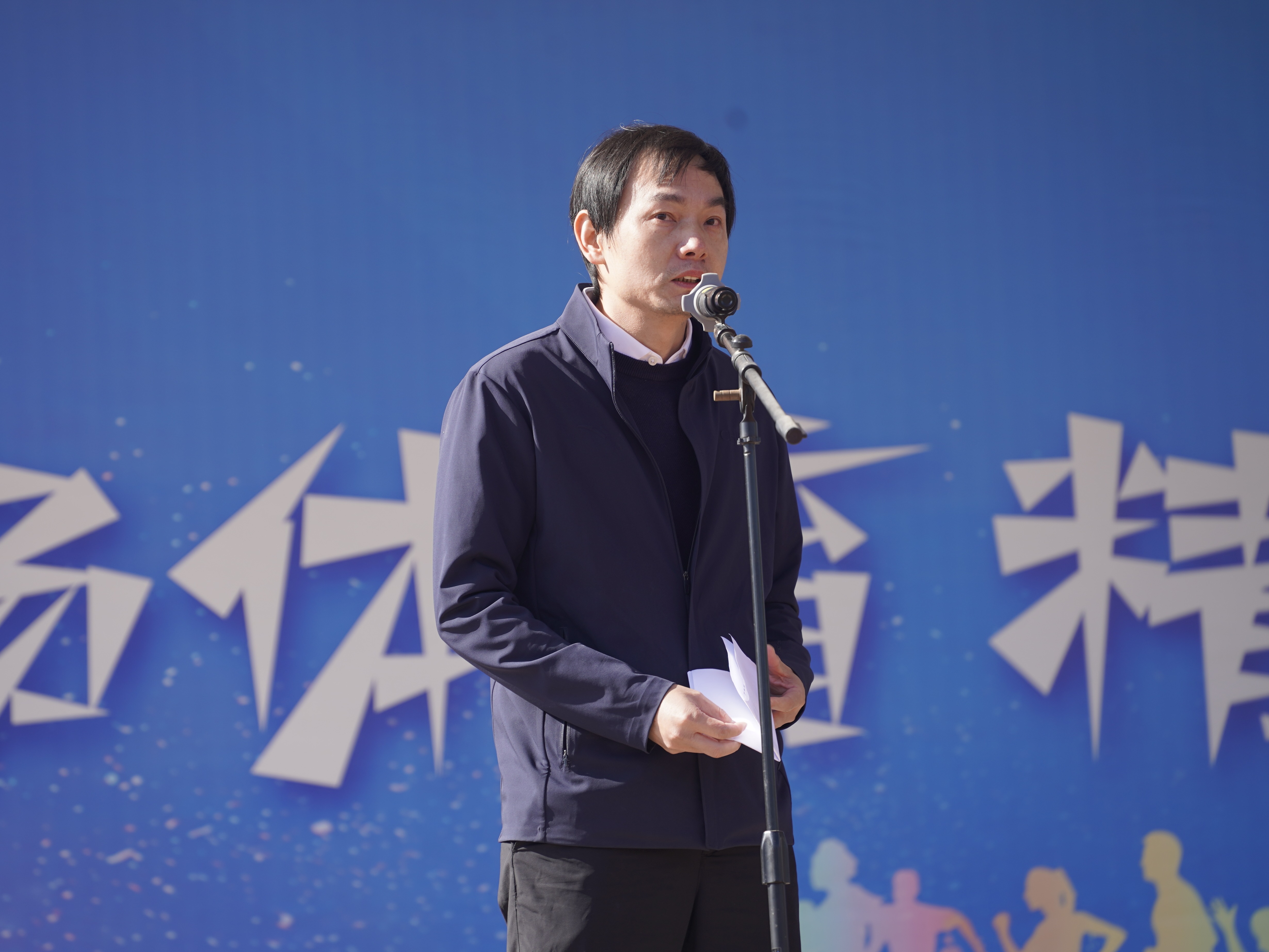 岳建军代表安徽师范大学体育学院在开幕式上致辞。他对运动会的顺利开幕表示热烈祝贺,高度肯定了附中在体育教育领域的成果——在刚刚结束的芜湖市第十五届运动会上,附中男子篮球队和女子排球队双双斩获亚军,且学校每年为北京体育大学、华东师范大学等知名高校输送大批优秀体育人才。同时,他提及体育学院与附中长期稳定的合作关系,附中作为体育学院的教育实习基地,为实习生提供了宝贵的实践平台,此次运动会的裁判员队伍中便有多名体育学院学生,延续了双方互助共进的良好传统。