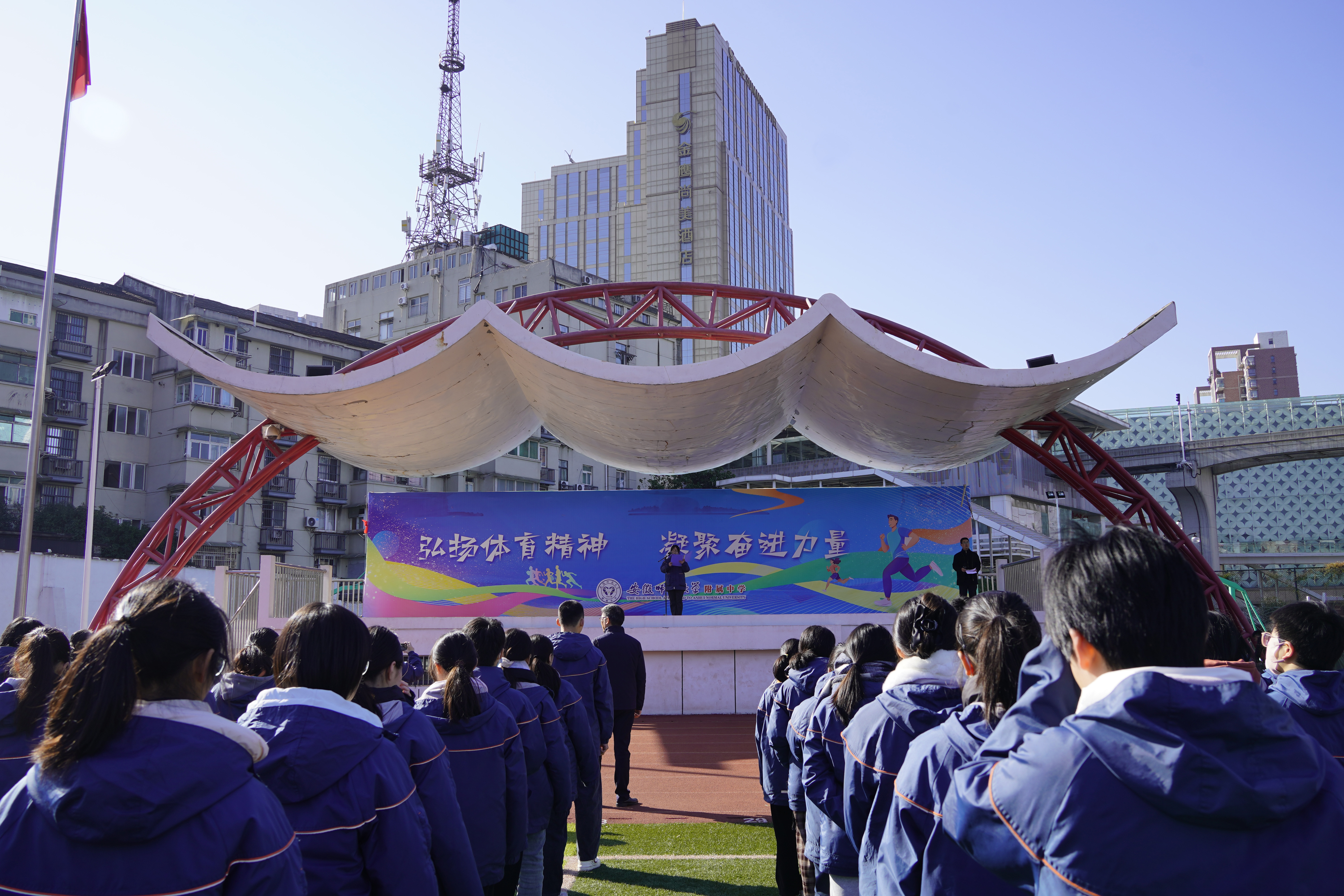 本网讯(附中 李居旖)为引导师生强化规范意识、锤炼纪律品格,筑牢成长根基,12月15日上午,安徽师范大学附属中学全体师生齐聚操场,隆重举行“守规范正言行,严纪律铸成长”主题教育活动,在庄重的氛围中凝聚自律力量,涵养优良校风。全体学生参加。活动由德育处副主任伍德生主持。
