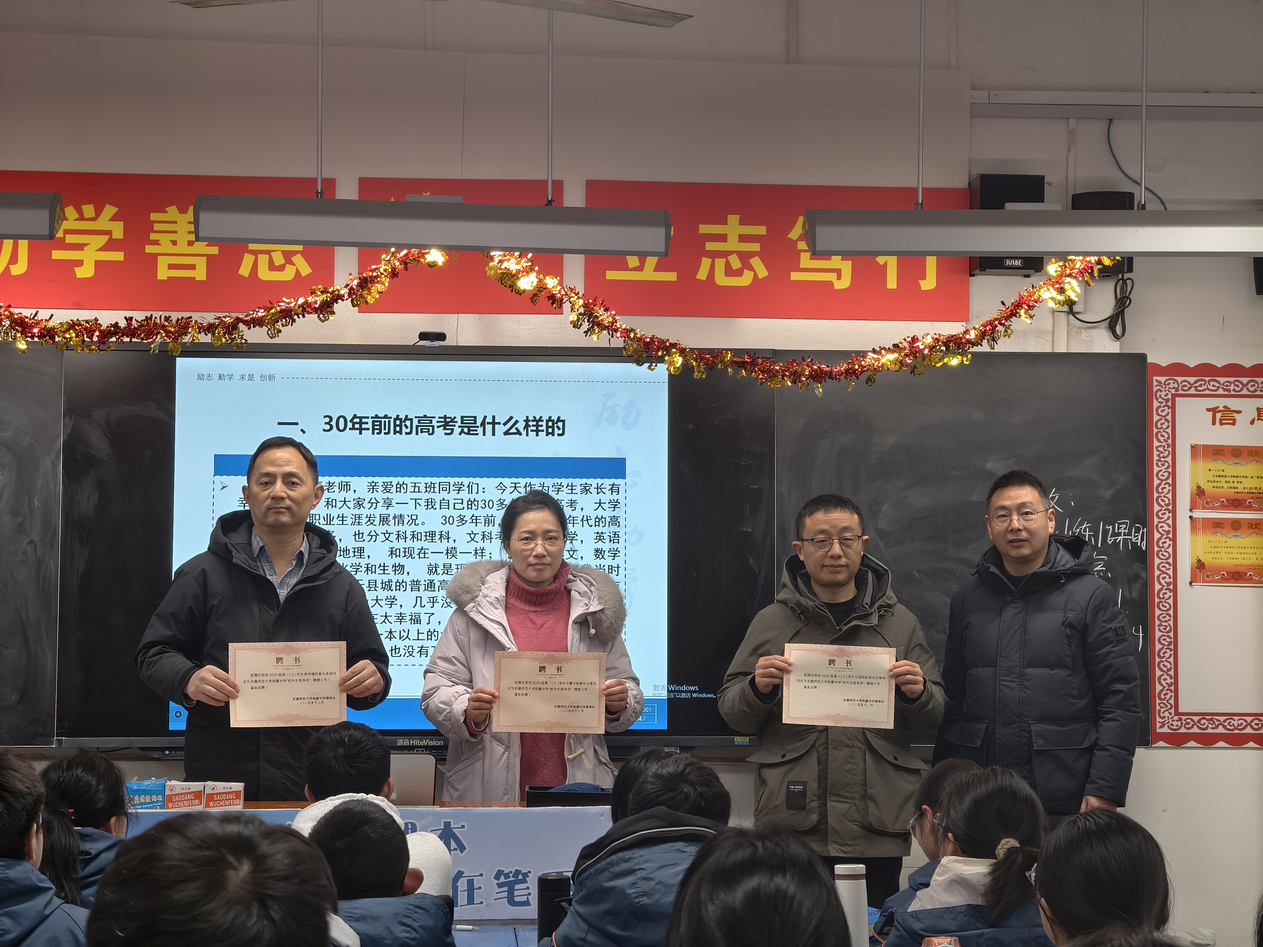 职业生涯分享会在各班级同步开启。活动伊始,校领导走进各班举行生涯导师聘任仪式,为家长代表颁发校外生涯导师聘书并致辞。毛宣海表示,家长是学生成长的第一任导师,聘任家长生涯导师是整合家校资源、推进生涯教育的重要举措,希望家长导师持续助力学生树立正确职业观、价值观。