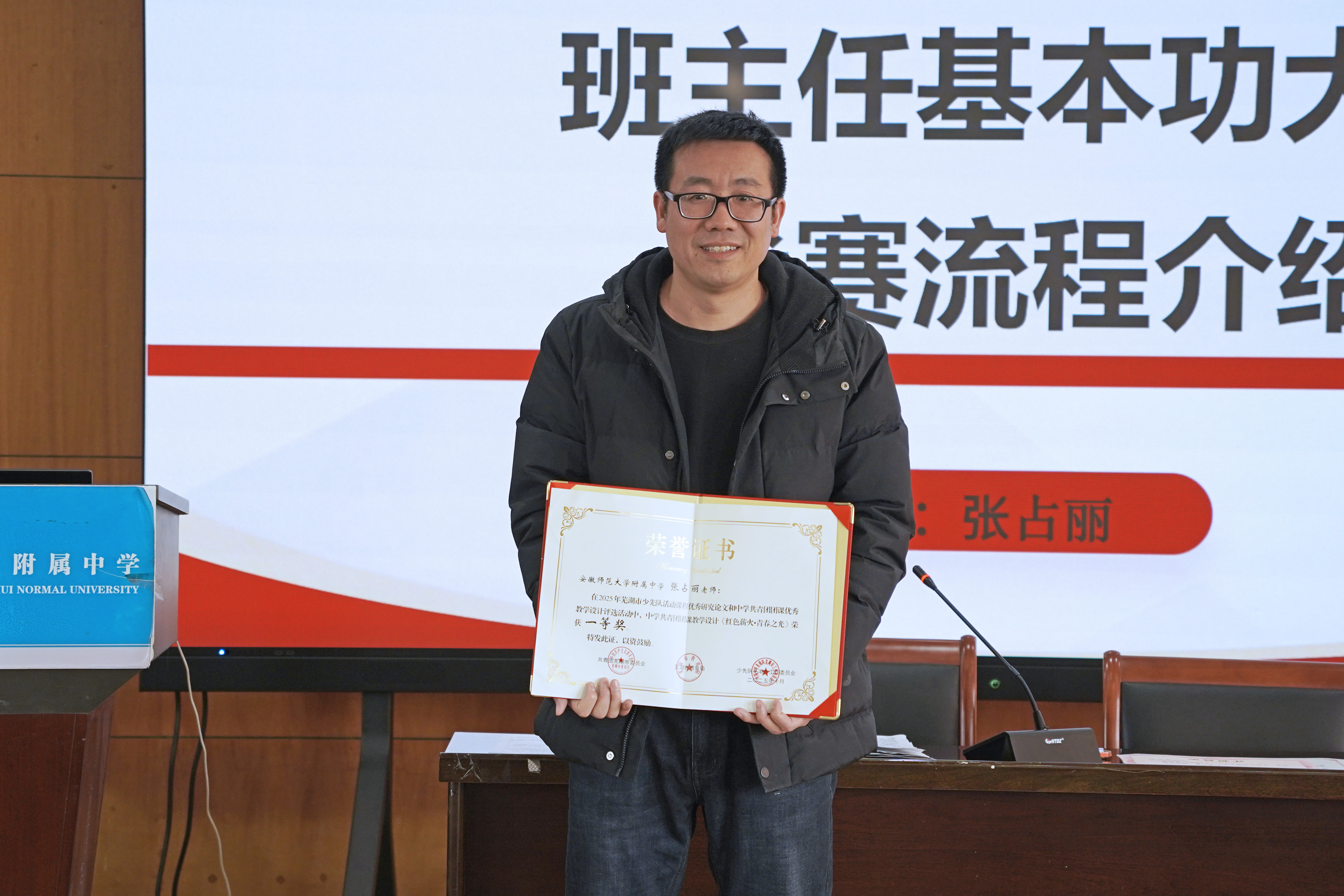 交流会上,张占丽以《班主任基本功大赛参赛流程介绍》为题,结合自身参赛经历,向与会班主任介绍参赛的实战经验与育人感悟。他深情回顾了参赛历程,衷心感谢备赛期间学校德育处给予的全方位支持和精准指导。围绕2025年芜湖市中小学班主任基本功大赛通知精神,张占丽对育人故事、带班育人方略、主题班会、情境模拟四大核心环节逐一解读。他结合各环节准备要点、参赛经历与心得,以鲜活案例和务实方法,为与会班主任梳理备赛思路与参赛技巧,兼具理论高度与实践温度。