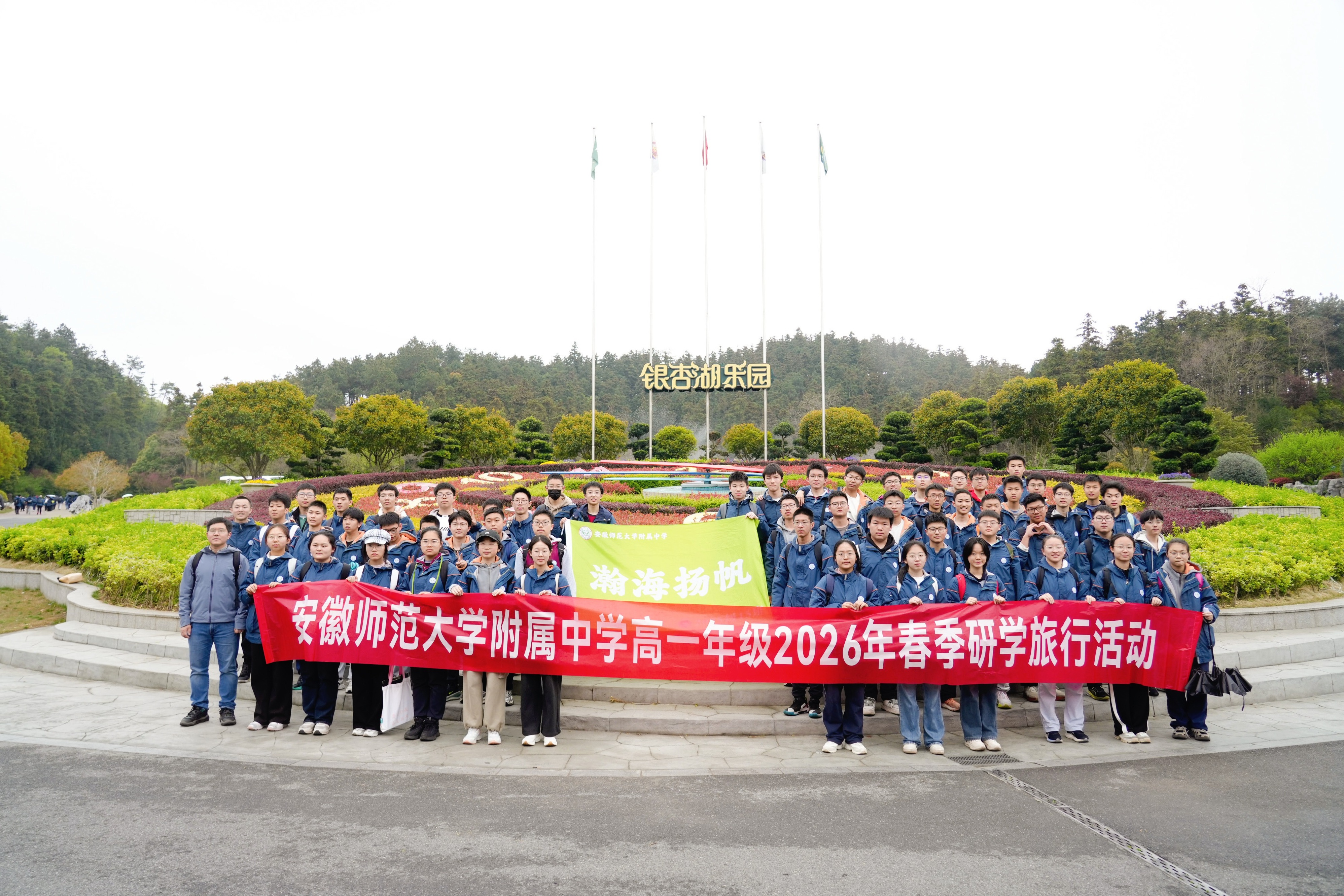 4月3日,安徽师范大学附属中学高一年级师生奔赴南京银杏湖乐园,开展以“格万物以穷理,著文章以抒情——银杏湖山水间的生物探秘与人文行走”为主题的春季研学活动。出发时小雨淅沥,洗润天地,抵达时恰逢雨霁云舒,惠风和畅,为这场自然与人文交融的研学之旅平添了几分惬意。