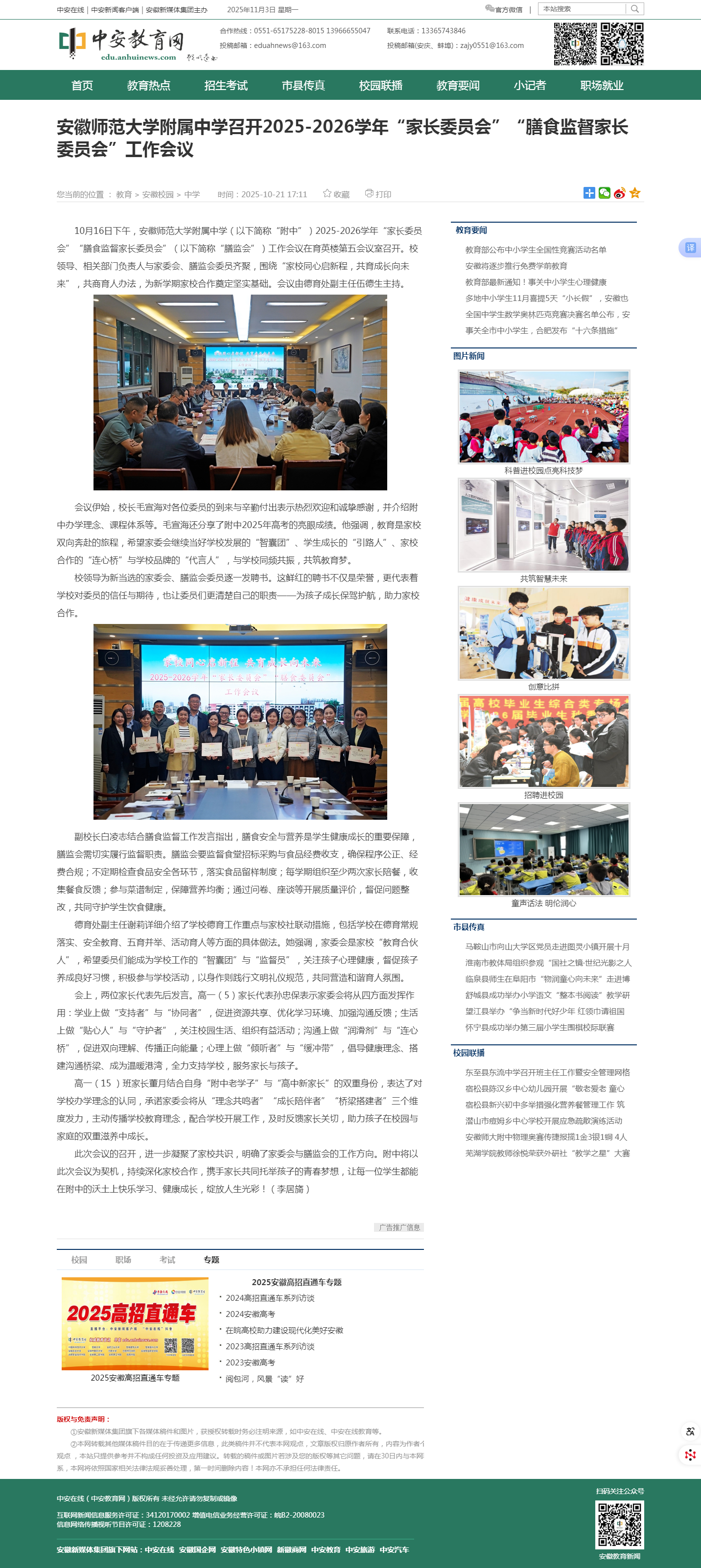 【中安教育】安徽师范大学附属中学召开2025-2026学年“家长委员会”“膳食监督家长委员会”工作会议