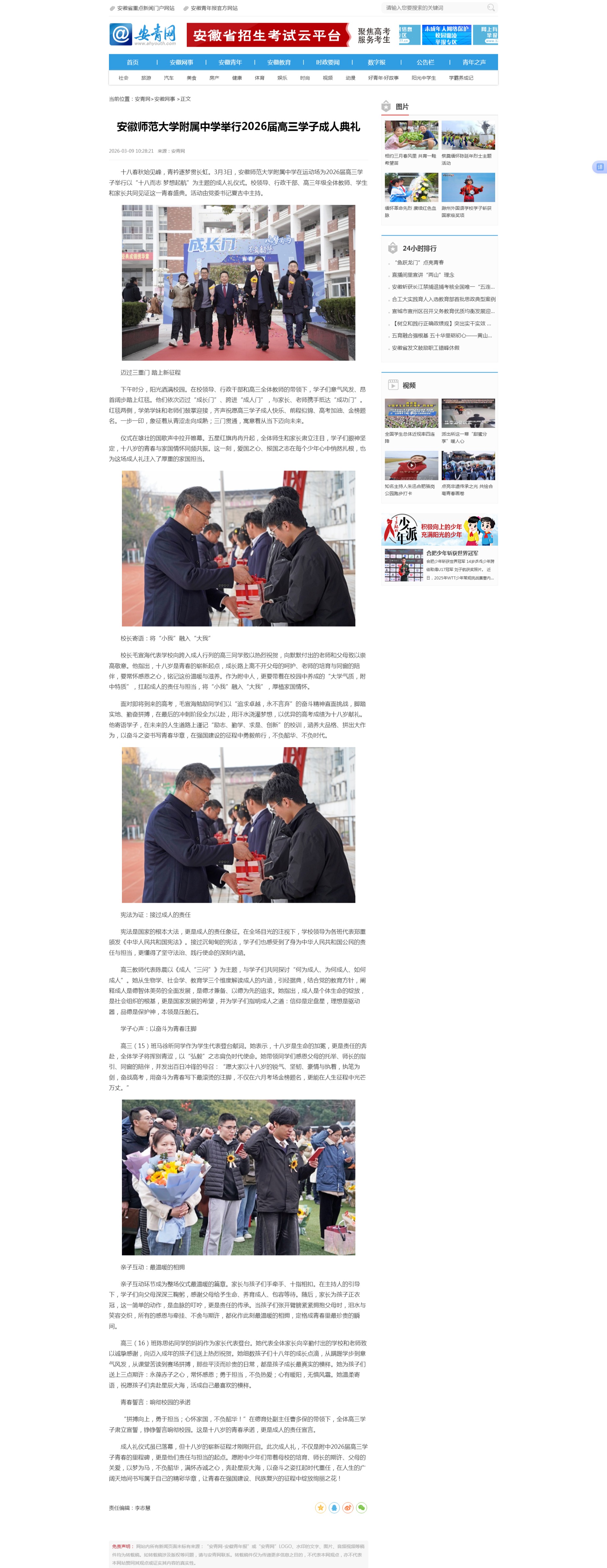 【安青网】安徽师范大学附属中学举行2026届高三学子成人典礼