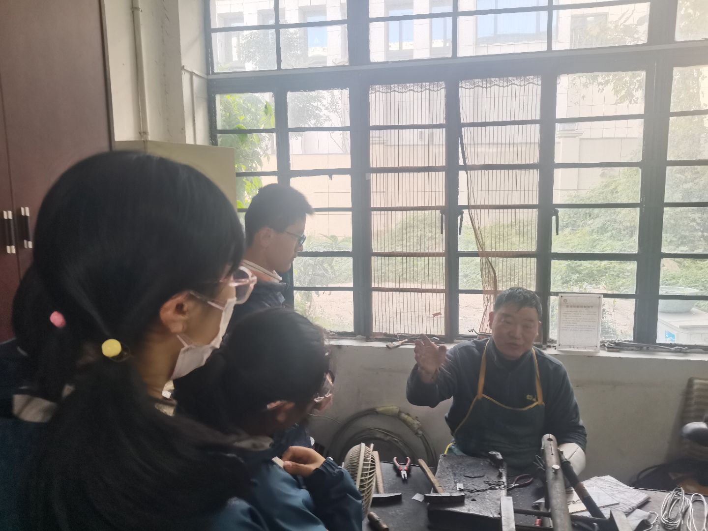在铁画大师工作室,社员们近距离观摩了铁画制作的神奇过程。普通的铁片在大师手中,经精准锤击与火花淬炼,转瞬化为姿态灵动的竹叶、轻盈飘逸的羽毛。大师一边演示冷锻、热锻等核心技艺,一边讲解制作要领,浑厚从容的讲解中满含对手艺的热爱与坚守,让社员们深刻领会到铁画创作中观察与感受的细腻之处。